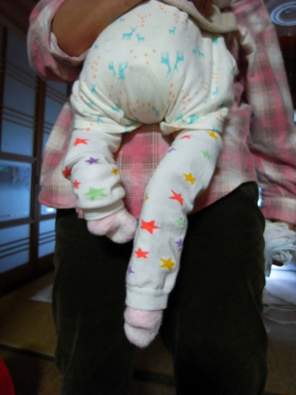 と言いたくなるような1枚です。。。レッグウォーマーと靴下が一緒に片っぽだけ伸びちゃったのよね。。。かなり爆笑してしまいましたいぢわるママでごめんね