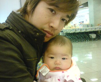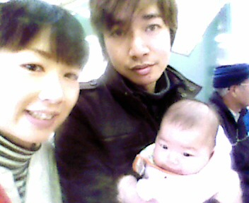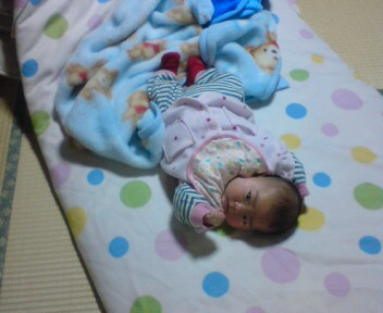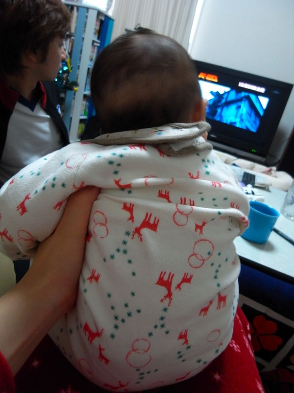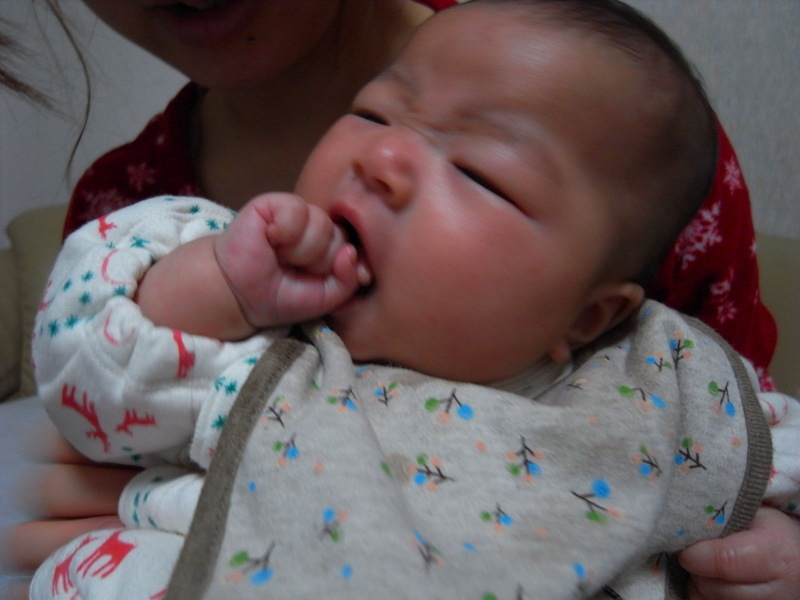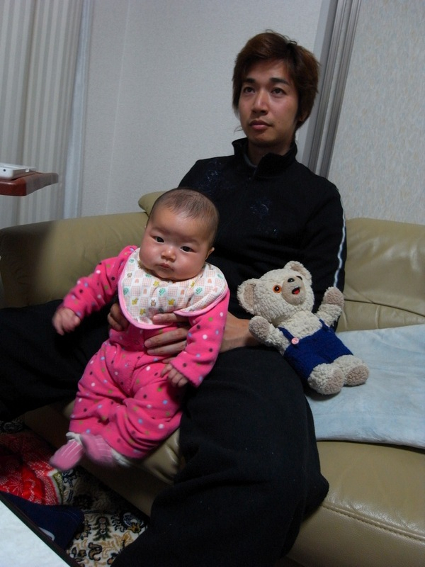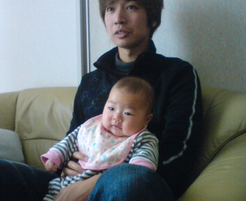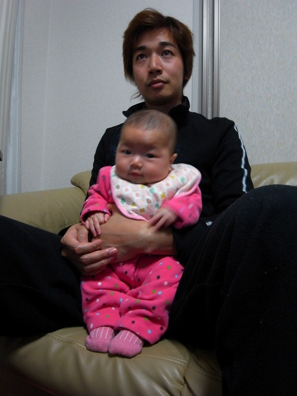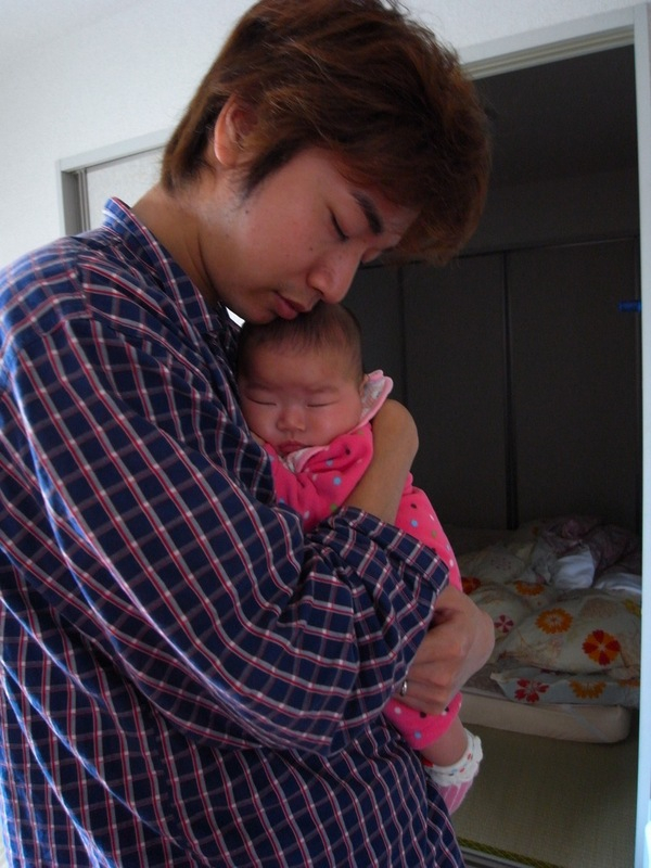 凛ちゃんはパパに抱っこされて、一点を見つめています。。。(これは大体眠い時のサイン)