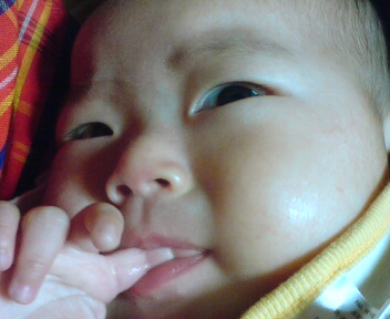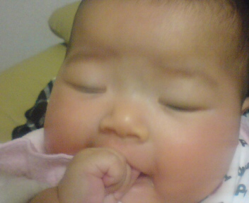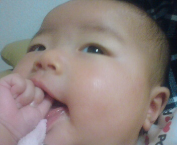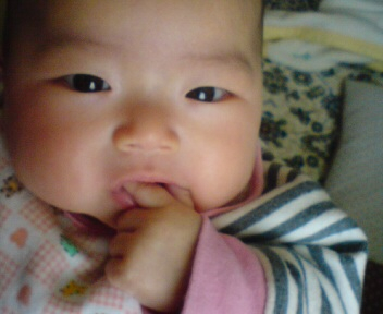 凛ちゃんは今日はママのお膝に乗ってますそんなにムキにならなくてもってくらいに指をしゃぶります