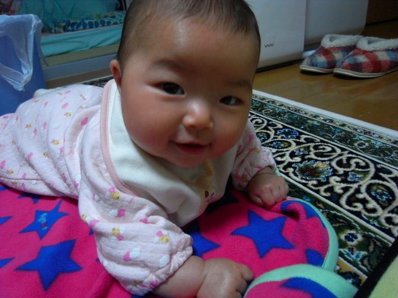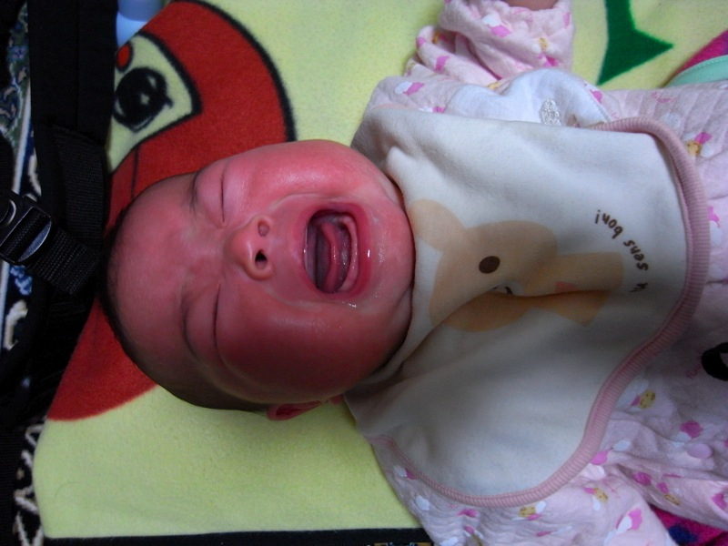 いい顔して泣いてるねー 首がすわってからちょっと顔が変わってきたね前はほんとに新生児ベビちゃんぽかったのにお姉さんベビちゃんになったような・・・ワカは2ヶ月くらいからあんまり変わらない気がします・・・