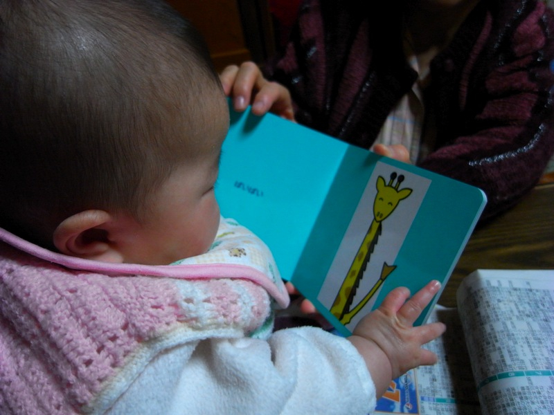 先日の3、4ヶ月健診でいただいた本を見てますたくさん本も読まなきゃね