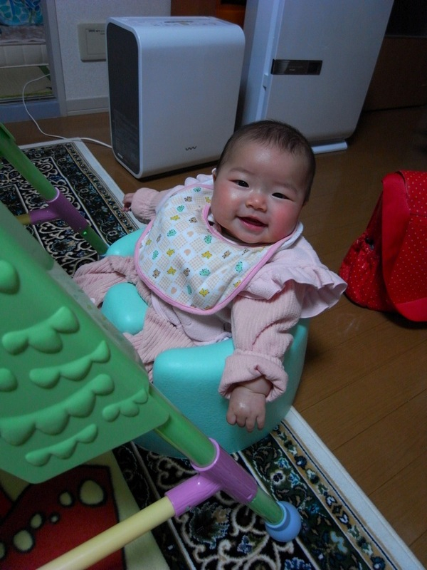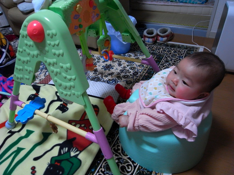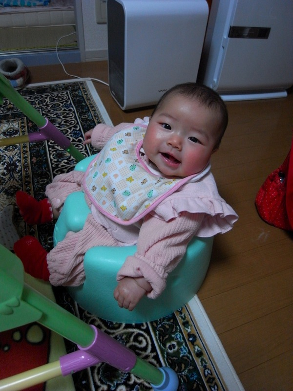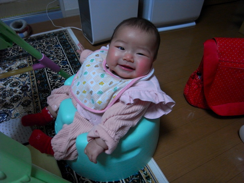 最近遠くまでよく見えるようになったので、ネンネ状態ではなくおすわりが好きな凛ちゃんchickさっそくバンボにすわらせてみると、、、