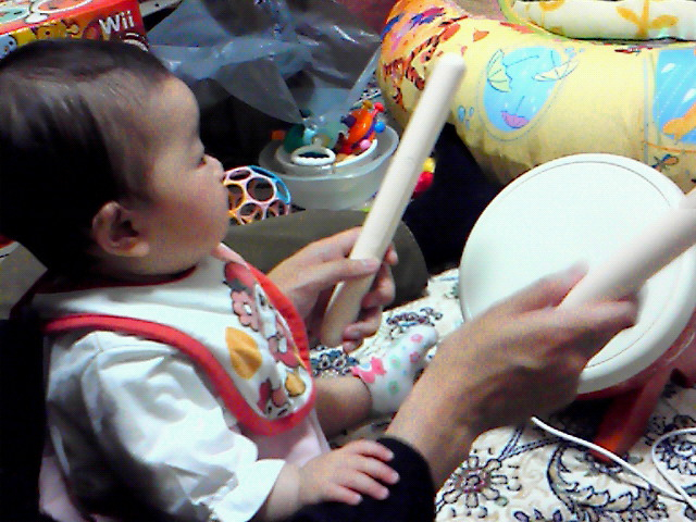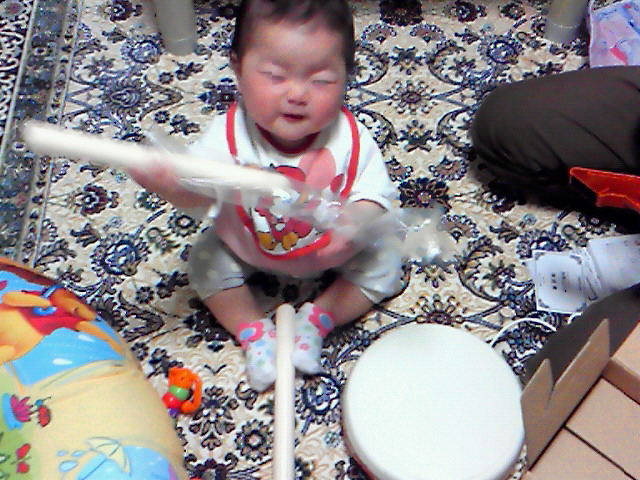 帰りにワングーで買った「太鼓の達人」でパパと仲良く遊んでいました