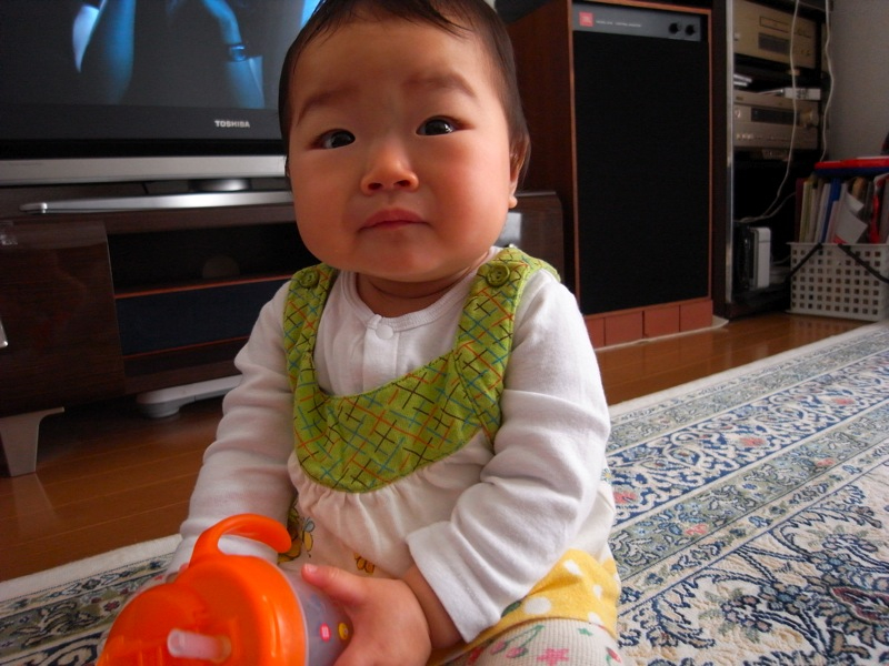 どうしたものかと見つめる凛ちゃん。。。この後何がおかしかったのか、ケラケラと一人で爆笑していました