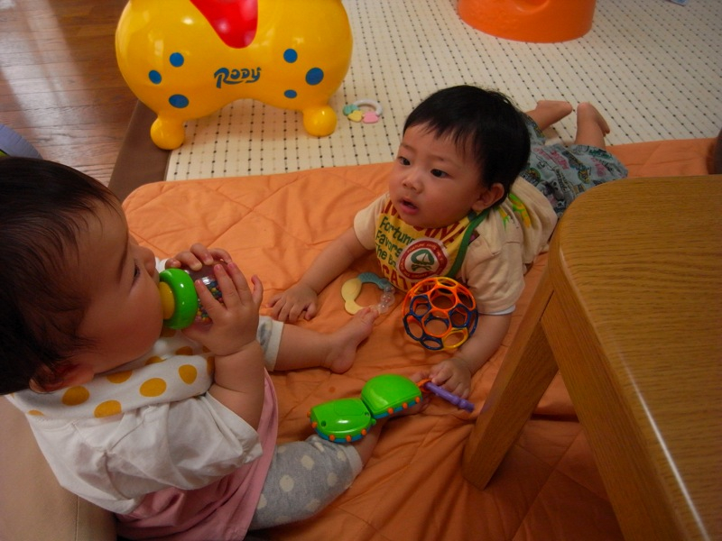 確かに赤ちゃんって他の赤ちゃんを見て影響される事があるみたい![]()