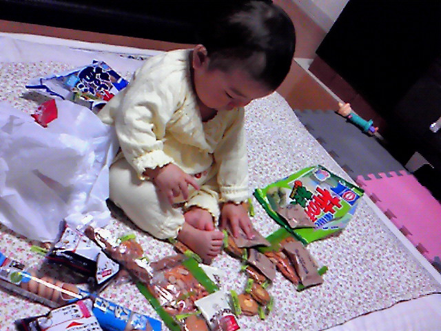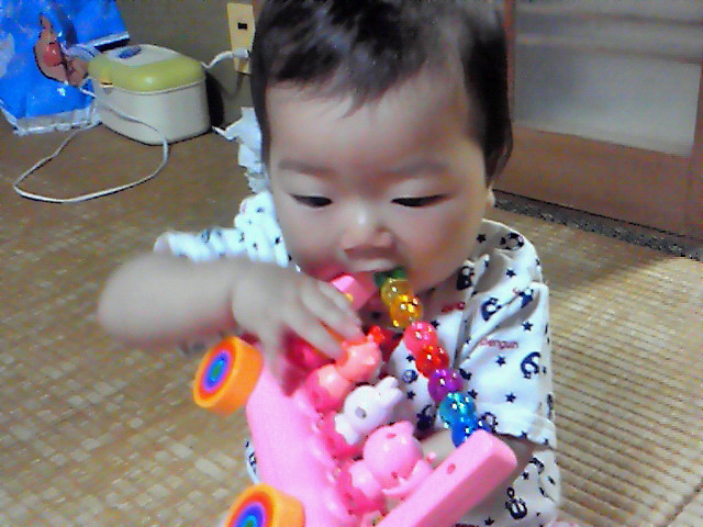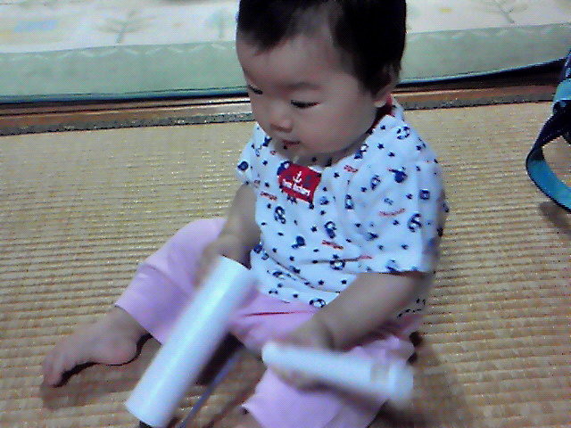 お気に入りのコロコロもGETしてご機嫌かと思いきや、ママの腕を噛んでみたり、またお菓子をバラまいてみたり…おてんばぶりを発揮しております