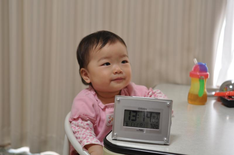 さて、本日も恒例の生まれた時間の写真撮影があるのですが、お昼時なので主役は時計を食べてます![]()