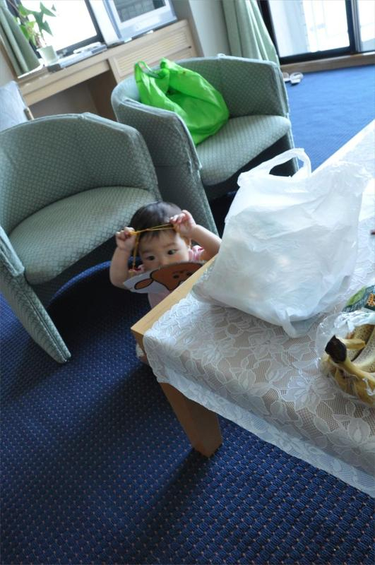 14時になりパパはチェックインの手続きをし、部屋に案内してもらいました。凛ちゃんはエレベーターの中で大泣き、部屋に入ってもギャン泣きが続きました![]()