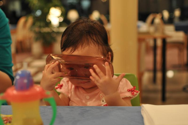 おしぼり置きでグラサンごっこをする凛ちゃん![]()