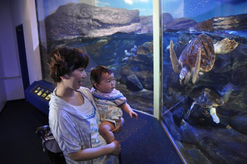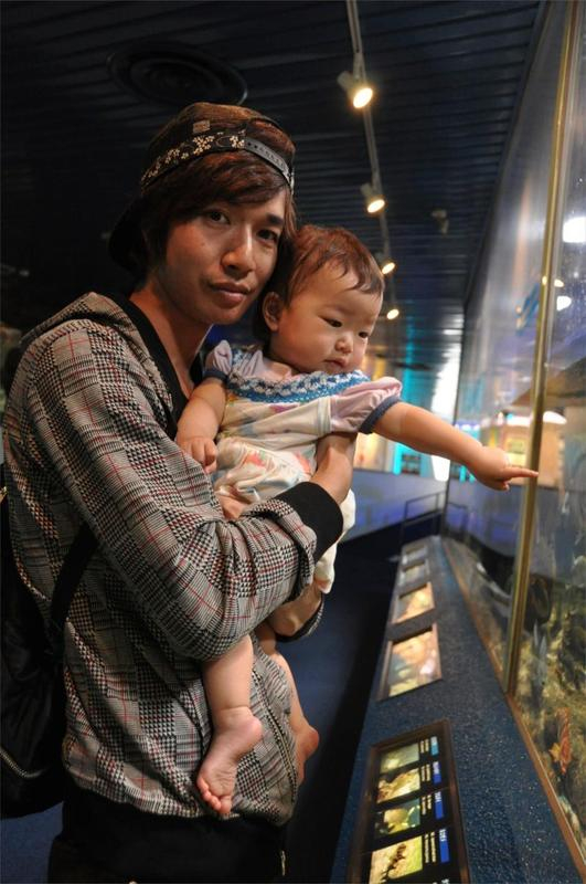 凛ちゃん、初めての水族館ですがちょっと怖い様子![]()