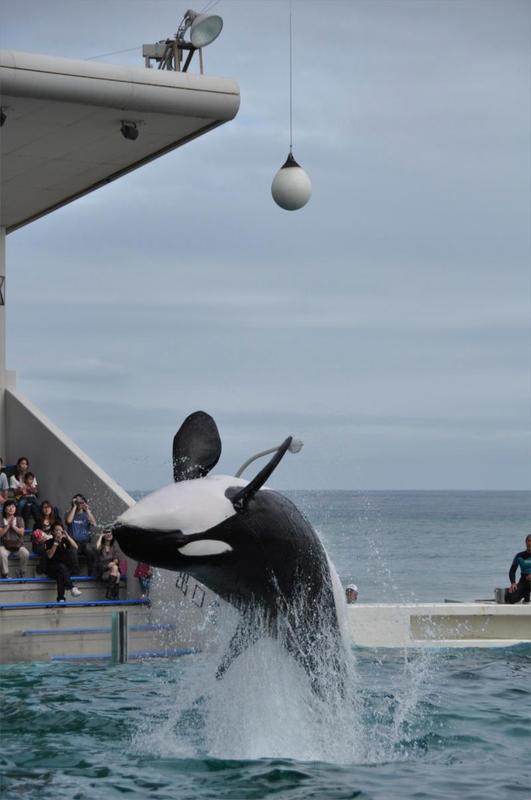 左上にチラリと見えるのは今年産まれたシャチの赤ちゃんの『アース』![]()