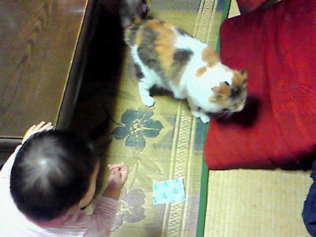 小さな子って猫やわんちゃんも気になるっぽいよねwink