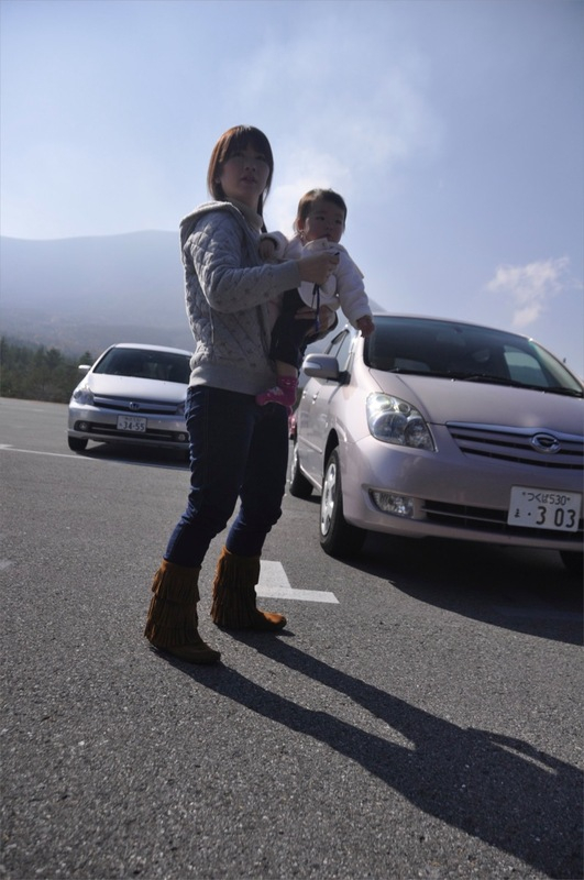 鬼押しハイウェイの途中の眺めのよいドライブイン!?で休憩、浅間山の噴煙をバックに![]()