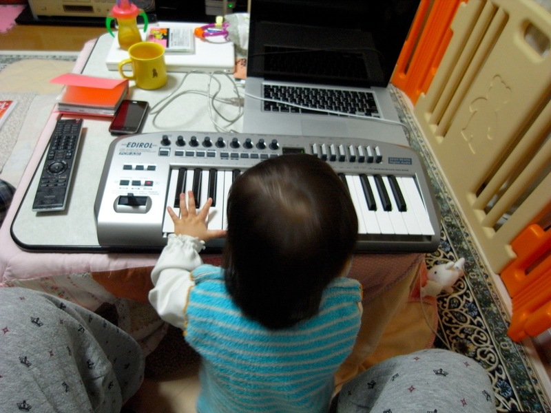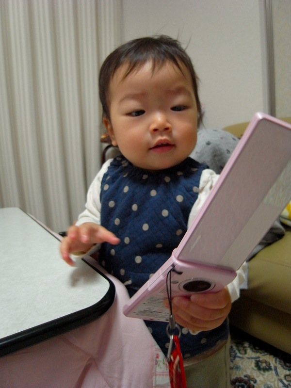 過ごしました ケータイを開けたり。。。。閉じたり。。。。 いいですねー 夜はパパのキーボードを弾いて楽しげでした