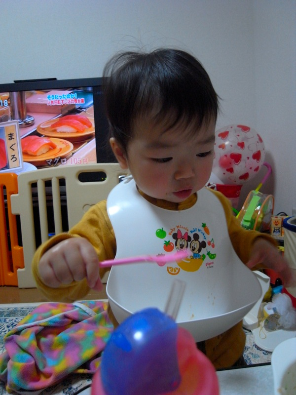 そんな凛ちゃん、少しお手伝いは必要ですがご飯を自分ですくって口に運べるようになりました![]()