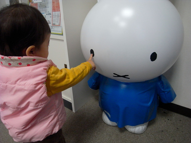 入り口にあるミッフィーちゃんを見せたら笑ったのでママもホッとしました![]()