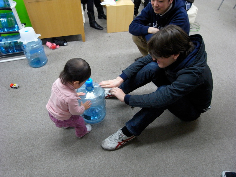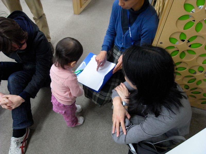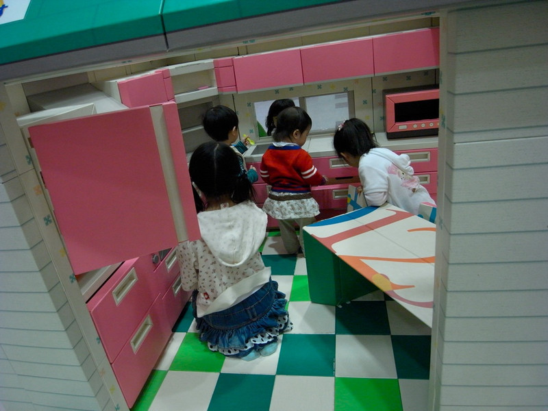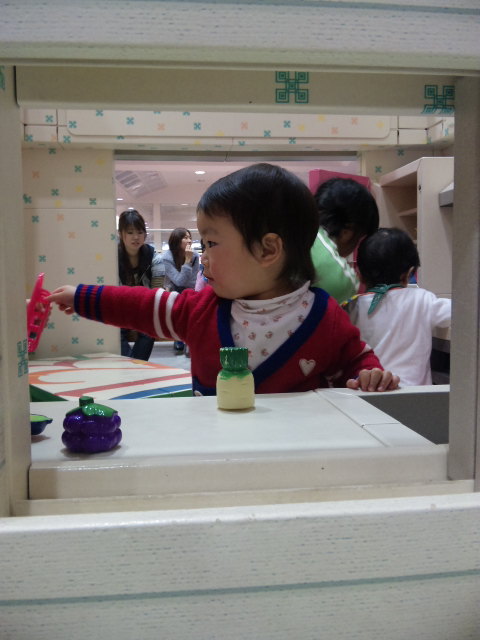 パパがTKを見ている間に紙で出来ているお家などがある広場があるので、凛ちゃんを遊ばせてみました![]()