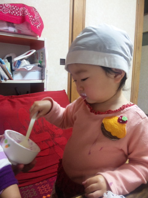 ママの中学時代に被っていた水泳帽を被せてみたら気に入ったようでした![]()