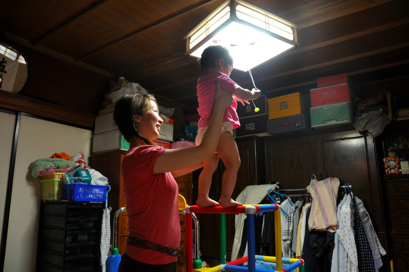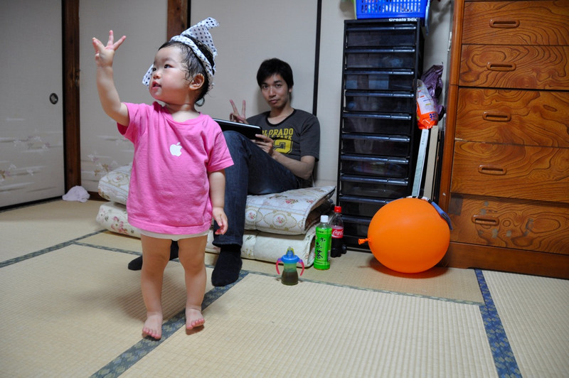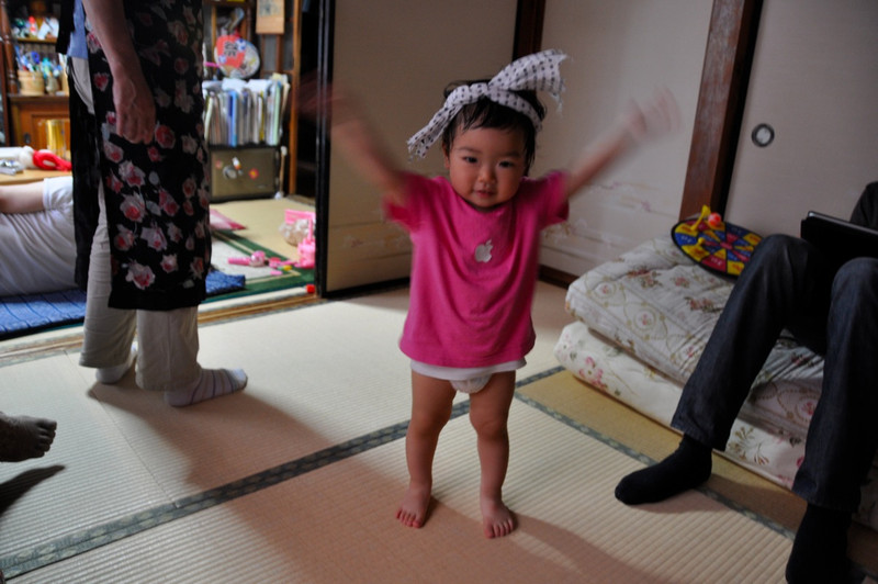 履いていたキュロットを脱いで、ばぁちゃんに手ぬぐいを頭に巻いてもらいご機嫌![]()