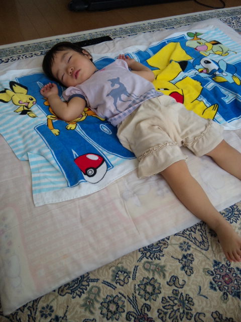 寝苦しいせいか、朝の4時半に目覚めて少し起きていた凛ちゃん。。。