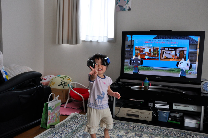 トイストーリーを見ながら機嫌良く夕飯を食べて、パパのご飯も食べて。。。っと、すっかり機嫌は直ったようです。。。