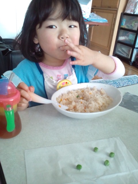 お昼は冷凍ピラフlovely 美味しいよね〜good忙しい時は持って来いですscissors でも凛ちゃん。ちゃっかりグリンピース残してますgawk