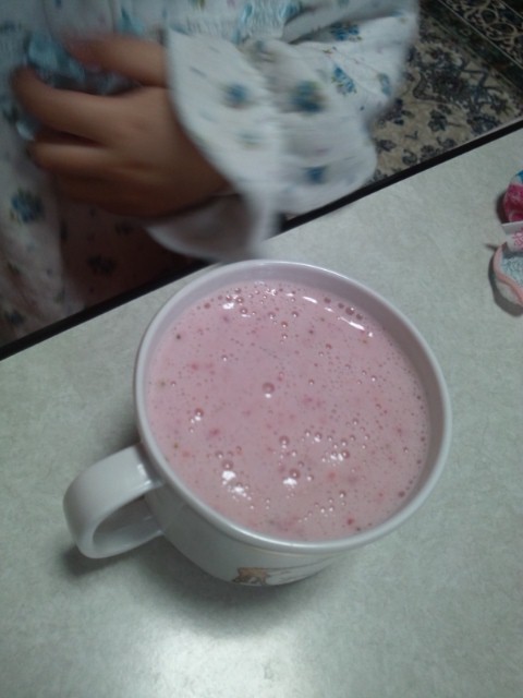 おやつに『いちご・バナナ・ヨーグルト牛乳』を作りました