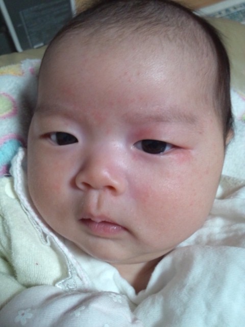 ↑ 目をこすり過ぎて、赤くなってる。。。しばらくミトンは外せないなぁ。。。