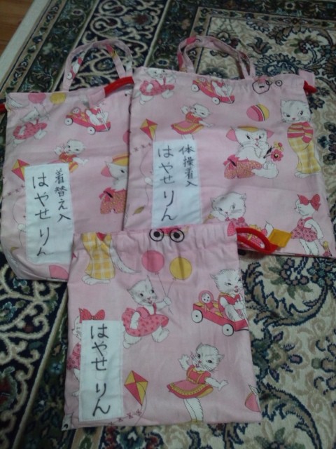 シューズとかないので、着替え・体操服入れと給食セットの袋の3点![]()
