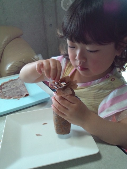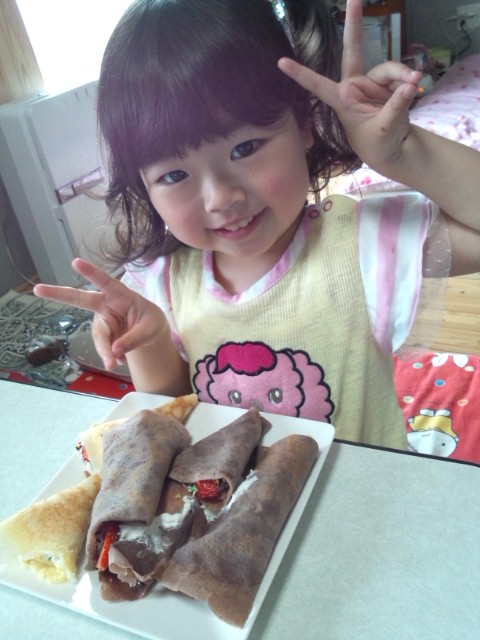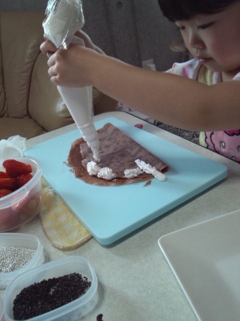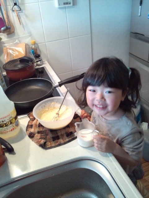 今日もパパはお仕事なので。。。凛ちゃんはママとクレープ作り