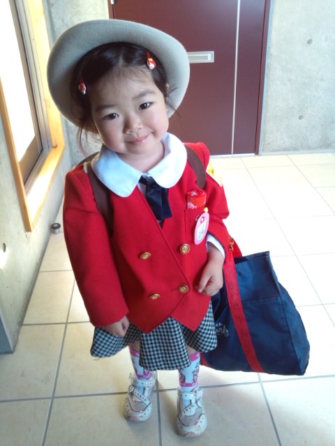今日は待ちに待っていた、幼稚園ですheart04 早々に起きた凛ちゃんは、早速制服に着替えてゴキゲンhappy01