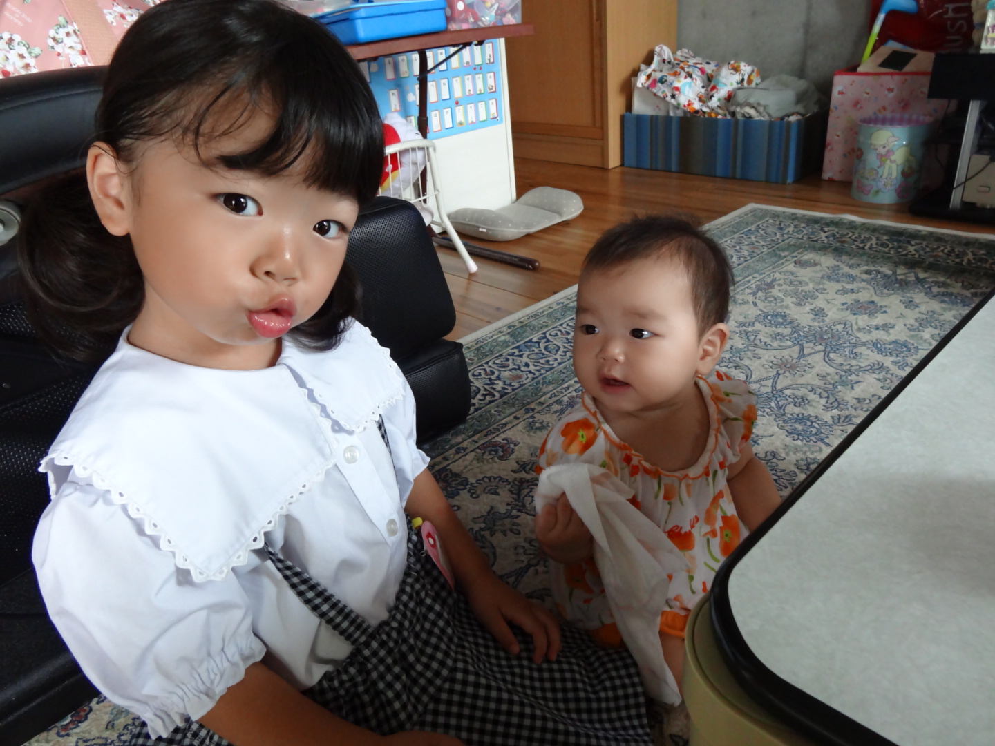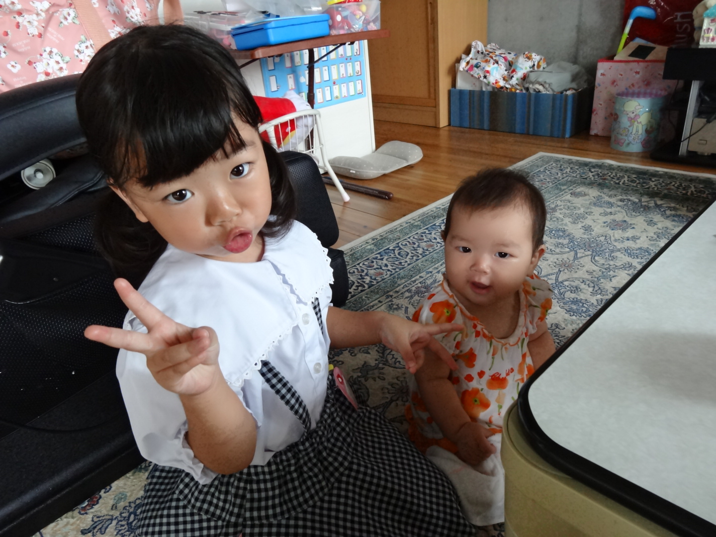 夏休み終わっちゃいましたね。美音ちゃん、有咲のお下がりやっぱり似合ってる(^_^)康平の下痢は落ち着きました(^_^;)実は私もうつって1日から苦しんでます(+_+)