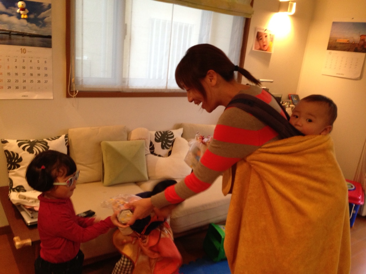 まきちゃんから「トリックオアトリートって言わないとお菓子もらえないんだよ〜!」と言われた凛ちゃんは「プリキュア!#%@~#〜$◯※」と言っていました。。。多分、プリキュアの呪文か何かかと思ったのかな?(笑)