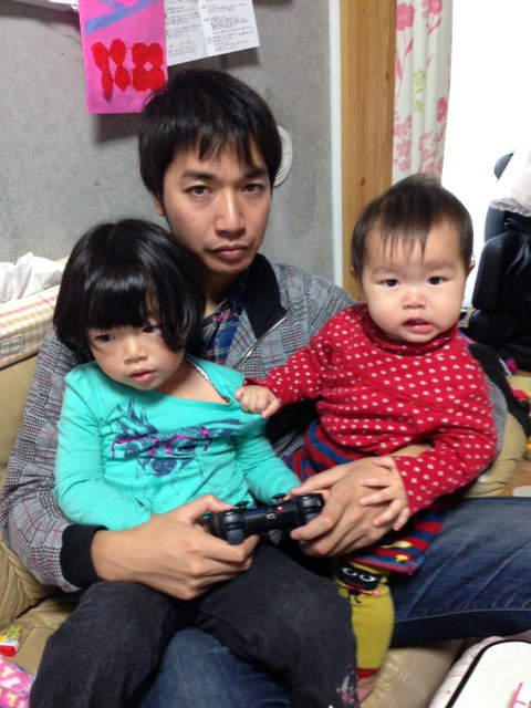 パパの上に乗って、コントロールの取り合いcoldsweats01 美音たん、強すぎだから。。。coldsweats02