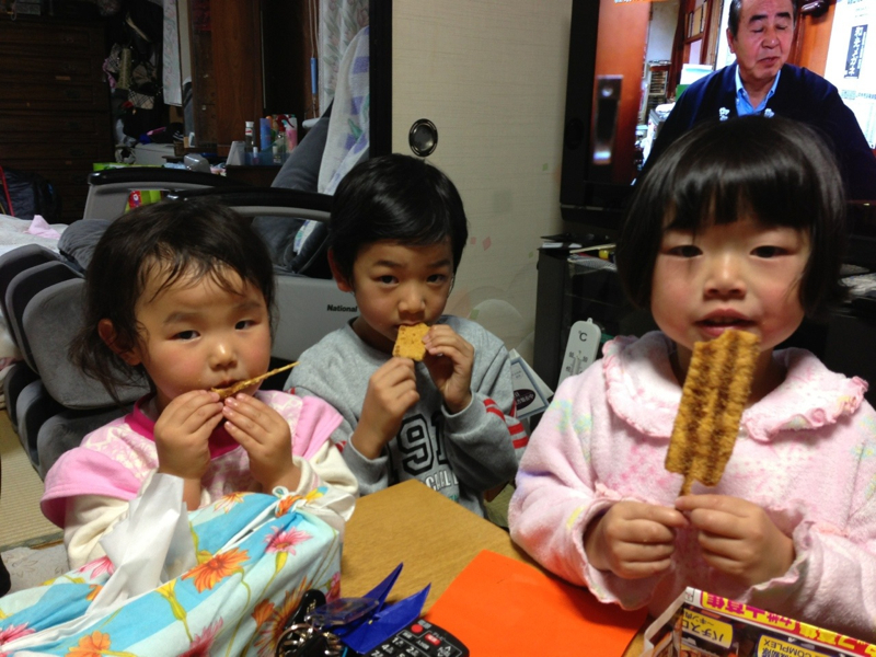 そして何故か、真理ちゃんに買ってきた『串かつ』を子供達が食べてます
