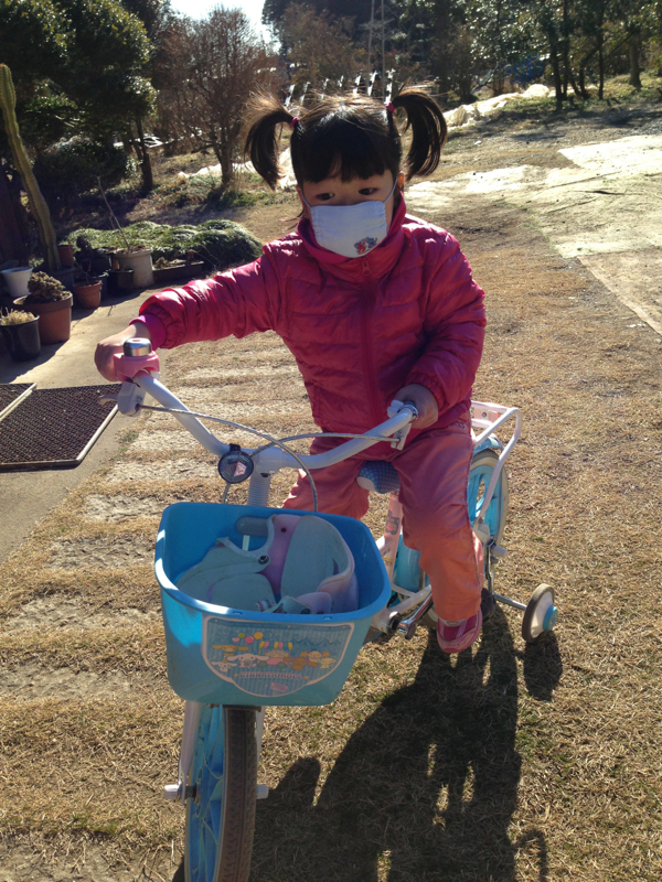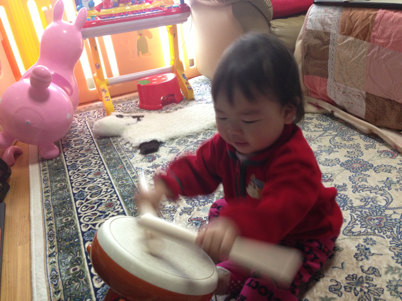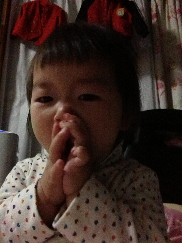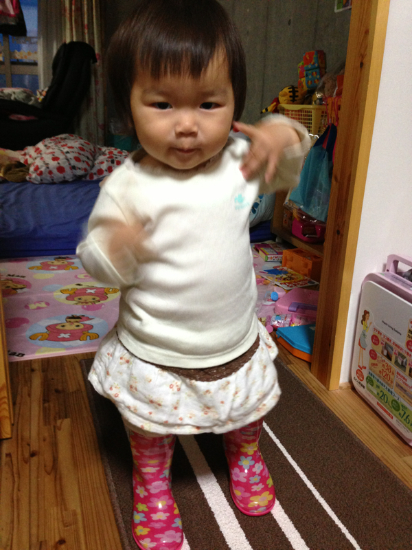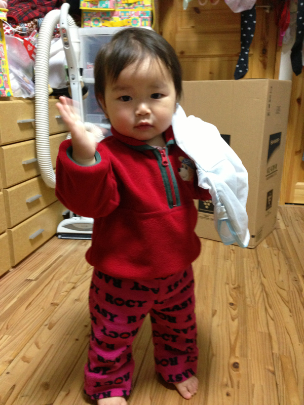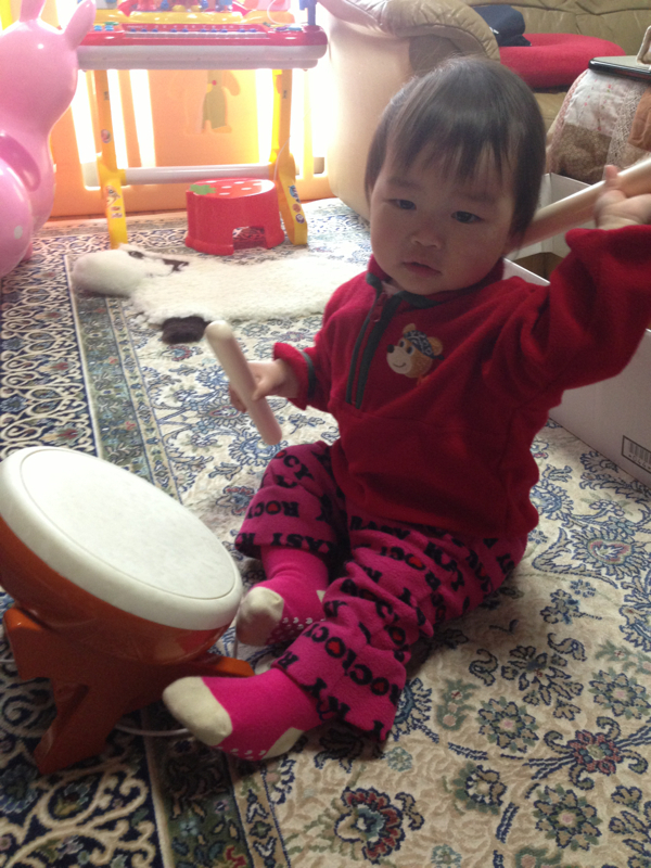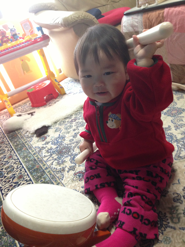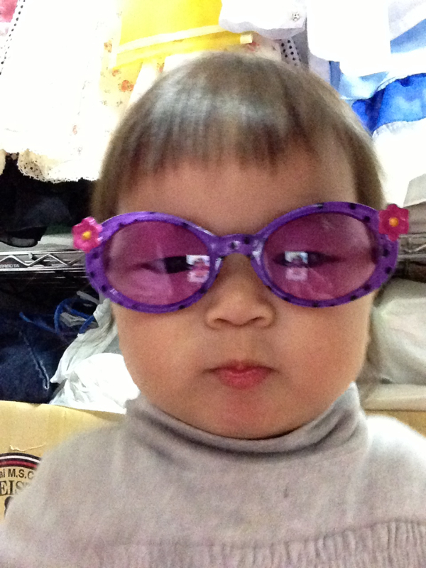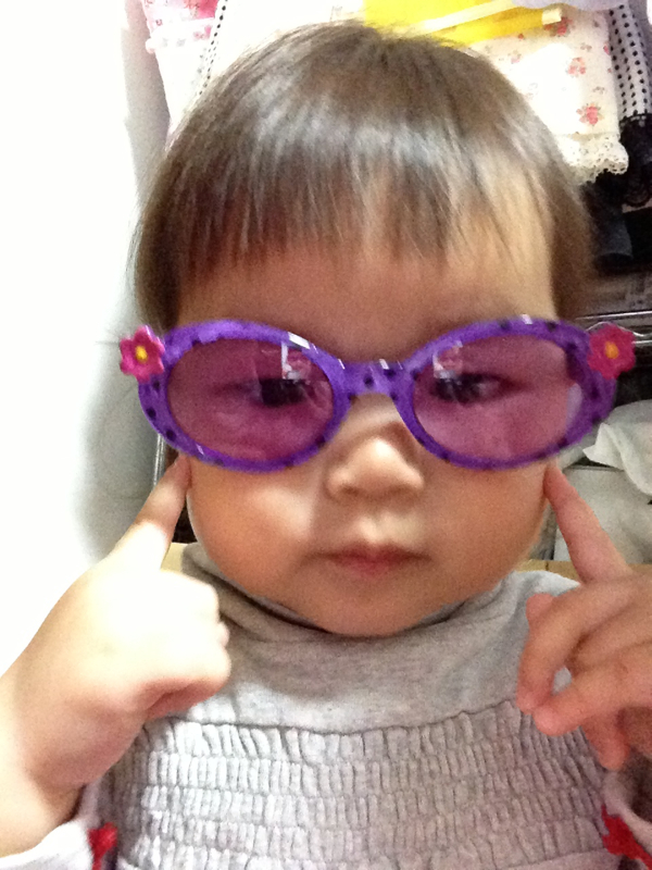 ↓ ママのメガネの袋を持って喜ぶ美音さん![]()