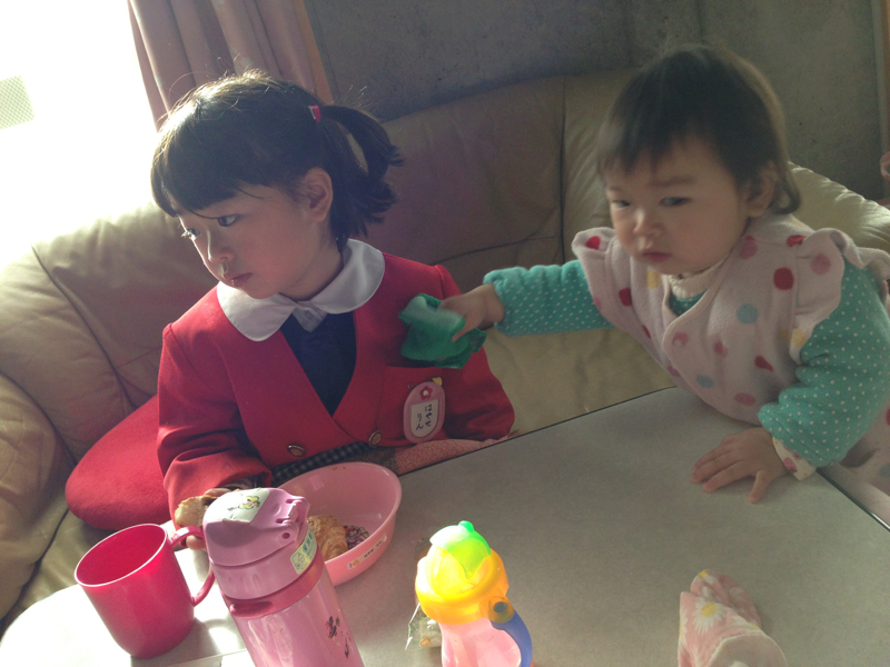 美音ちゃん、いつもおねえちゃんのポケットにあるハンカチが気になって。。。お姉ちゃんの目を盗んでは抜いちゃいます![]()
