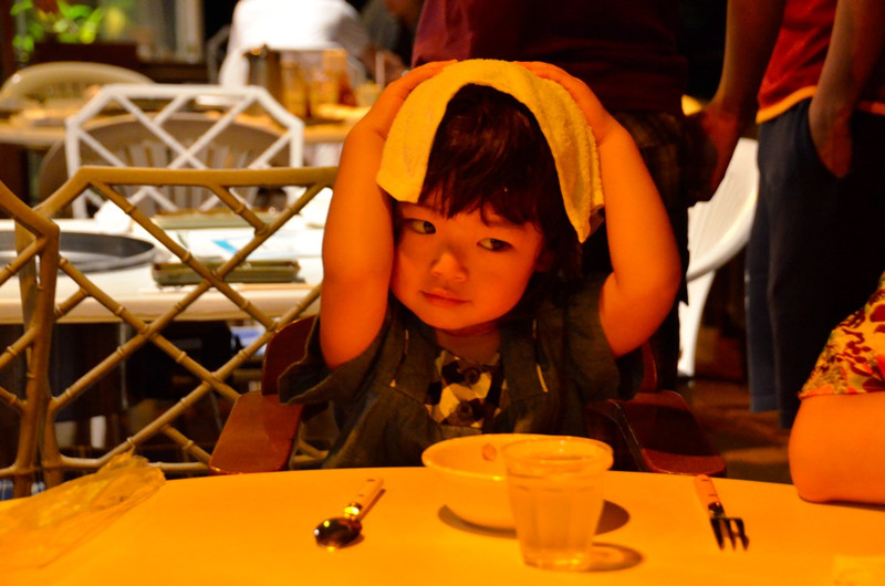 凛ちゃん、おしぼりで顔を拭いていました。。。おやじ。。。?!