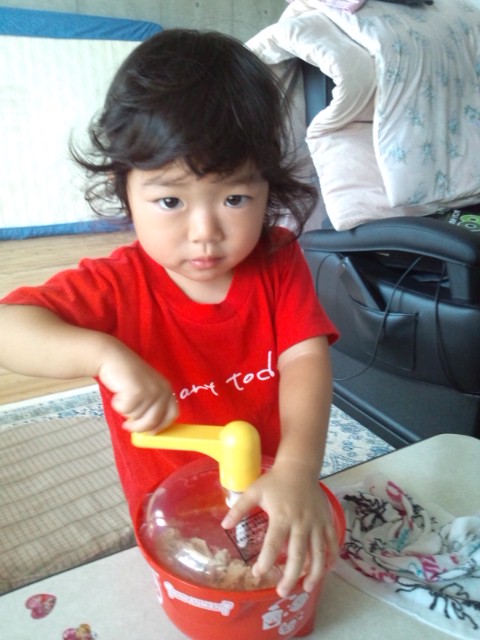 材料をマシーンに入れて、混ぜ混ぜ。。。