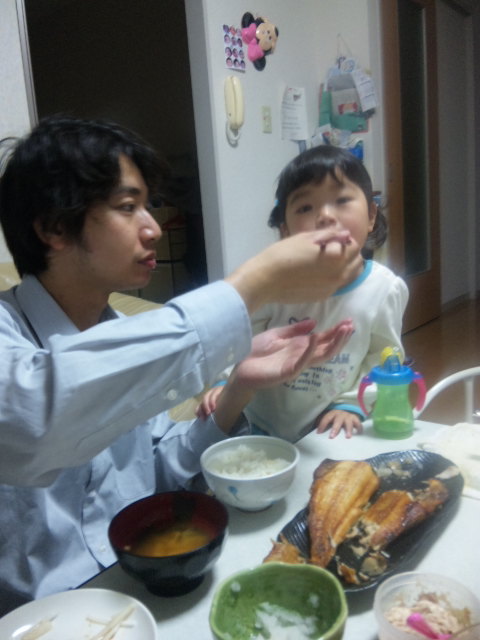 夜はパパが早めの帰宅だったので、平日ではめずらしく3人でご飯を食べる事が出来ました