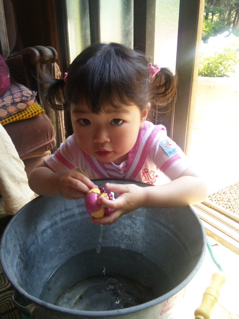 凛ちゃんは、久しぶりに見る赤ちゃんにちょっぴり緊張・・・