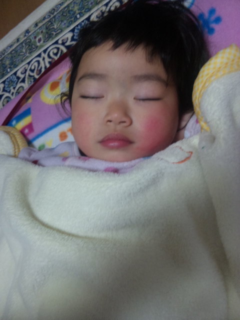 ↓ 凛ちゃん、いつもヨダレを垂らして寝るので、ママがティッシュ挟みました