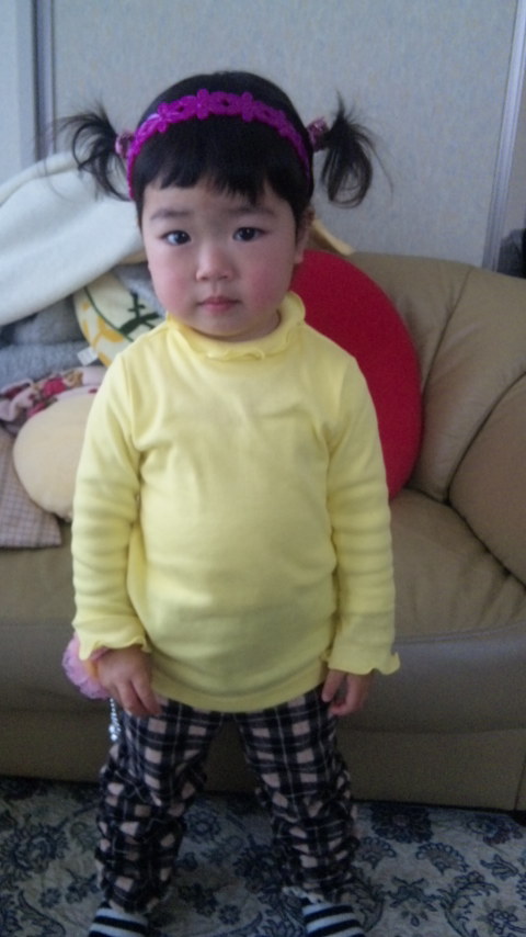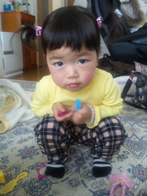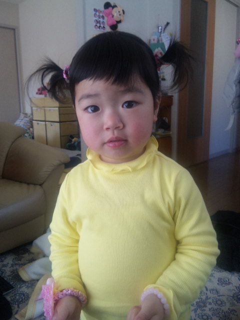 焼き肉屋さんで、貰ったヘアゴムでしばってみました