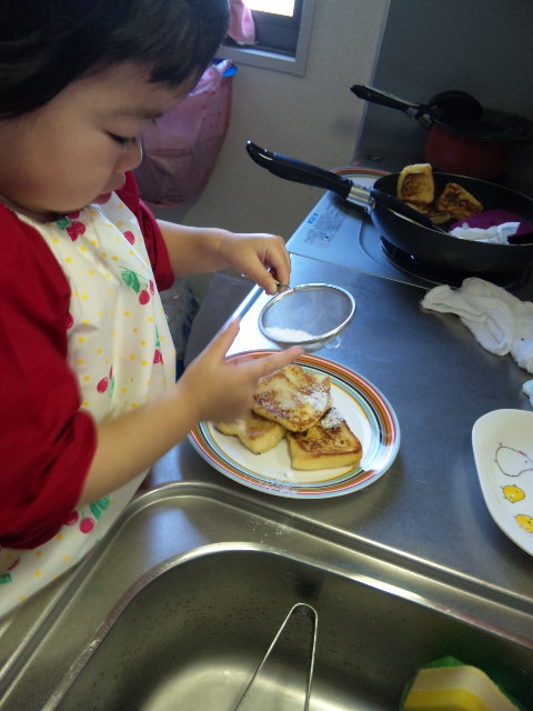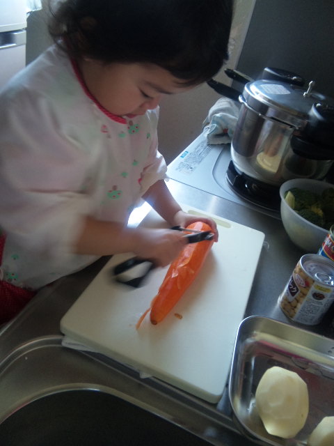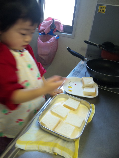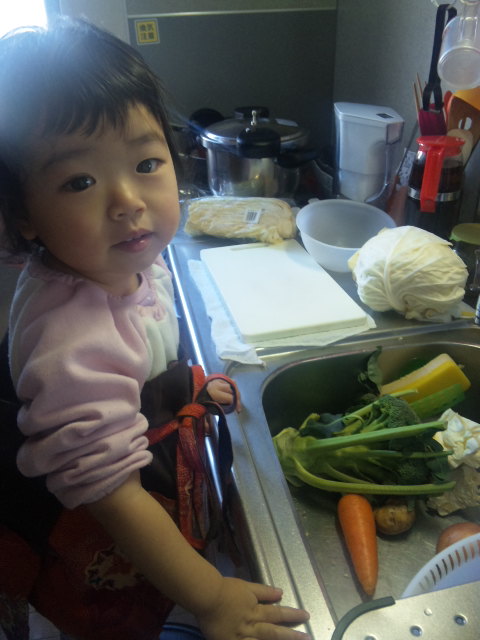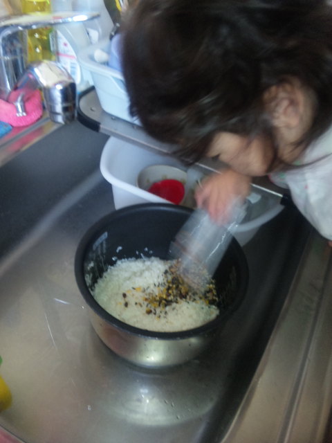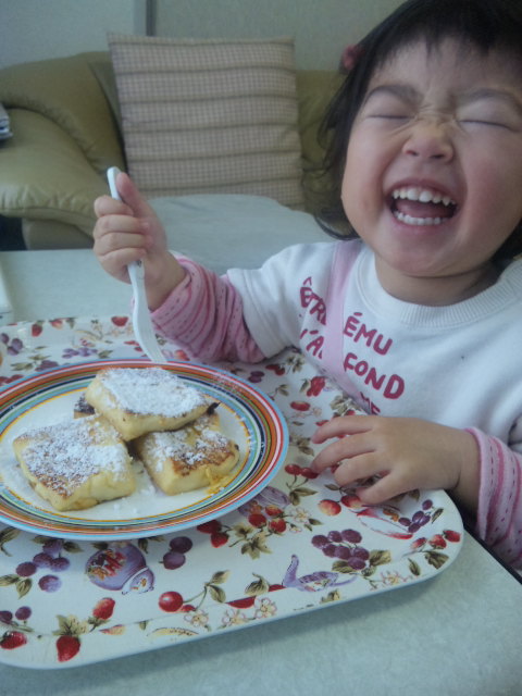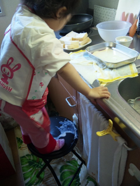 凛ちゃんのお守りで疲れ果て、お腹が空き過ぎたパパ・・・ママの髪の毛の工程を見ていて、これでは時間が掛かる訳だと、納得したそうです![]()
