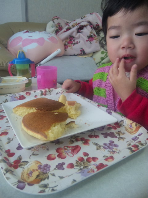 先程セブンで買った『ホットケーキアイス』を頬張り何やら嬉しそう・・・なお姫さま![]()