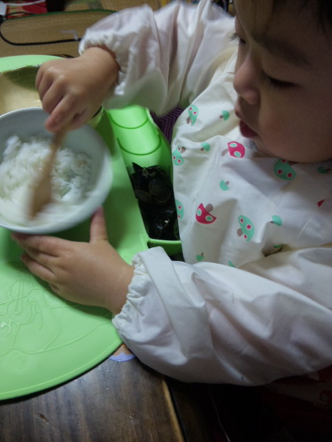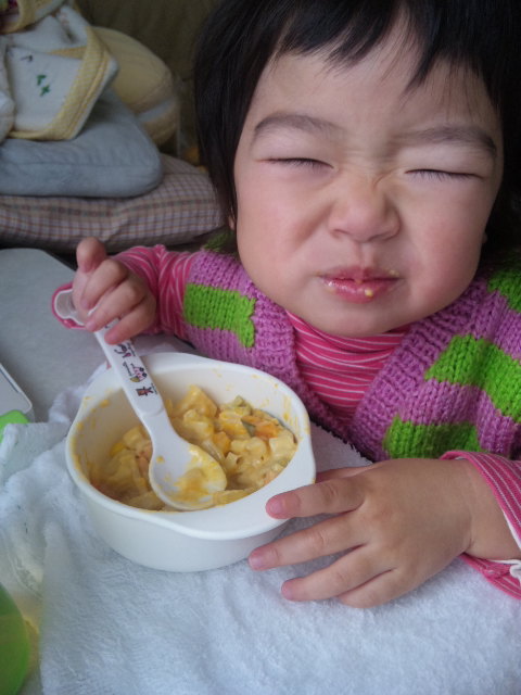 お昼は『サツマイモとカボチャのグラタン』凛ちゃん美味しそうに食べていました