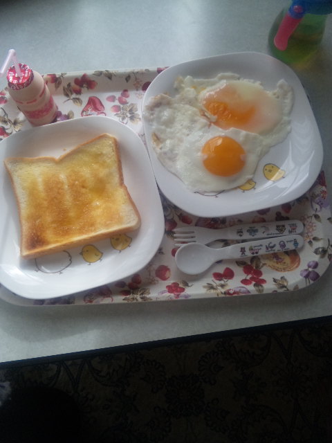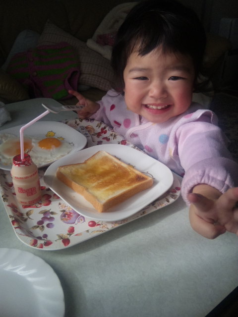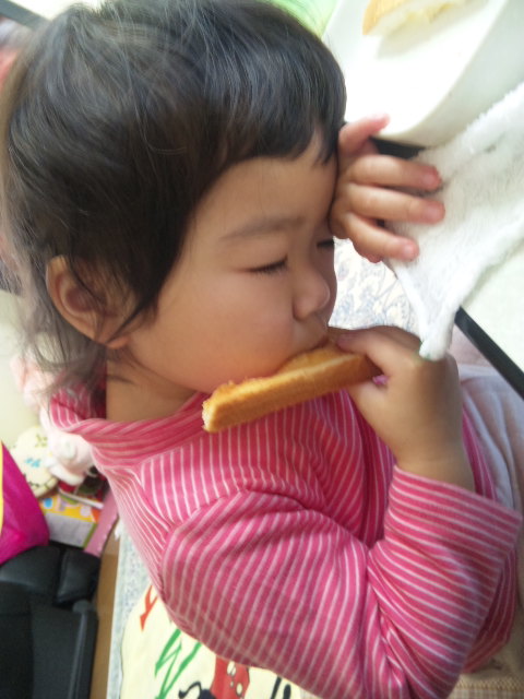 その後、食パンを食べながら。。。寝たふり(笑)