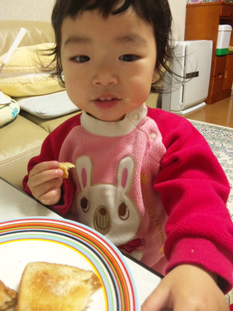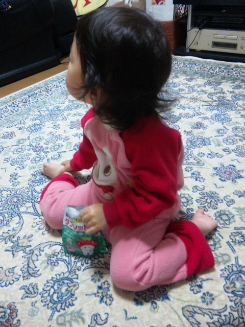 3粒食べ終わっても、、ママに袋を渡さない凛ちゃん![]()