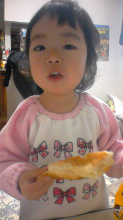 ↑これは、カスタードクリームが練り込んであるパンです![]()