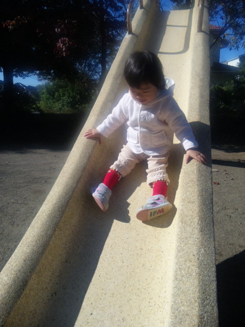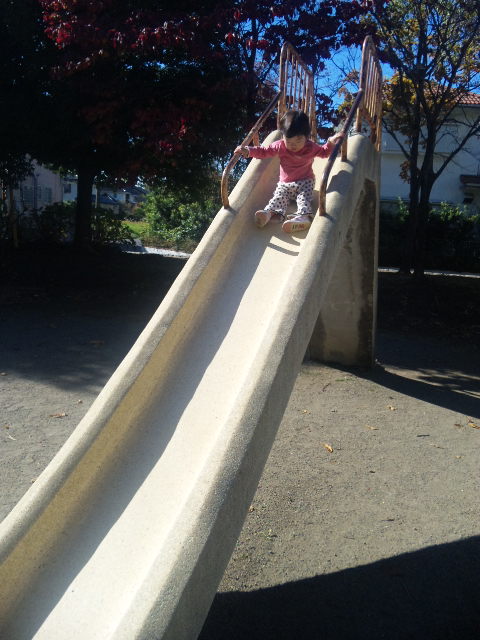 ↓凛ちゃん、ダイブすべり台を上手に滑れるようになりました![]()